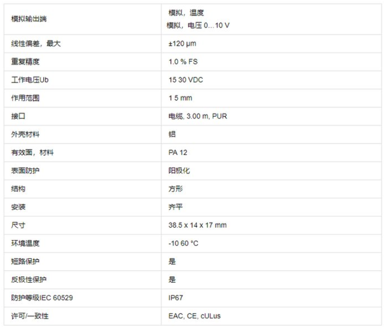 德國巴魯夫balluff磁致伸縮位移傳感器BTL5-S116B-M1045-H-K10磁致伸縮位移傳感器由磁致伸縮位移盒和編碼器組成,安裝尺寸小、結(jié)構(gòu)緊湊、巴魯夫balluff電子尺BTL5-S116B-M1045-H-K10測量行程大、精度高的傳感器,行程從一百毫米至幾十米不等。磁致伸縮位移式位移傳感器的功能是把機械運動轉(zhuǎn)換成可以計量,記錄或傳送的電信號。位移傳感器由可拉伸的不銹鋼繩繞在一個有螺紋的輪轂上,此輪轂與一個精密旋轉(zhuǎn)感應器連接在一起,balluffBTL5-S116B-M1045-H-K10位移傳感器感應器可以是增量編碼器,絕對值編碼器,混合或?qū)щ娝芰闲D(zhuǎn)電位計,同步器或解析器。操作上,拉繩式位移傳感器安裝在固定位置上,拉繩縛在移動物體上。拉繩直線運動和移動物體運動軸線對準。運動發(fā)生時,拉繩伸展和收縮。BTL5-S116B-M1045-H-K10電子尺一個內(nèi)部彈簧保證拉繩的張緊度不變。帶螺紋的輪轂帶動精密旋轉(zhuǎn)感應器旋轉(zhuǎn),輸出一個與拉繩移動距離成比例的電信號。測量輸出信號可以得出運動物體的位移、方向或速率。巴魯夫BTL5-S116B-M1045-H-K10磁致伸縮位移傳感器常用參數(shù)有測量行程、輸出信號模式、線性度、重復性、分辨率、線徑規(guī)格、出線口拉力、最大往返速度、重量、輸入電阻值、功率、工作電壓、工作溫度、震動、防護等級等。拉繩位移傳感器的信號輸出方式分為數(shù)字信號輸出和模擬信號輸出,BTL5-S116B-M1045-H-K10電子尺balluff數(shù)字輸出型可以選擇增量旋轉(zhuǎn)編碼器、絕對值編碼器等,輸出信號為方波ABZ信號、自由RS485信號、MODBUS信號、測量行程長(100~35000mm),精度高(~%FS),防護等級IP65。外殼和線輪均經(jīng)過防腐處理,牽引繩為不銹鋼繩,可以在惡劣的環(huán)境下(包括海水)工作。可選輸出方式有:電阻型、電壓型、電流型、增量脈沖型、絕對脈沖型。B8h廣州南創(chuàng)電子科技有限公司