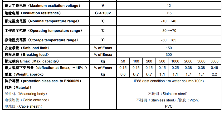 德國(guó)HBM稱重傳感器S40AC3 500kg產(chǎn)品技術(shù)參數(shù):UWJ廣州南創(chuàng)電子科技有限公司