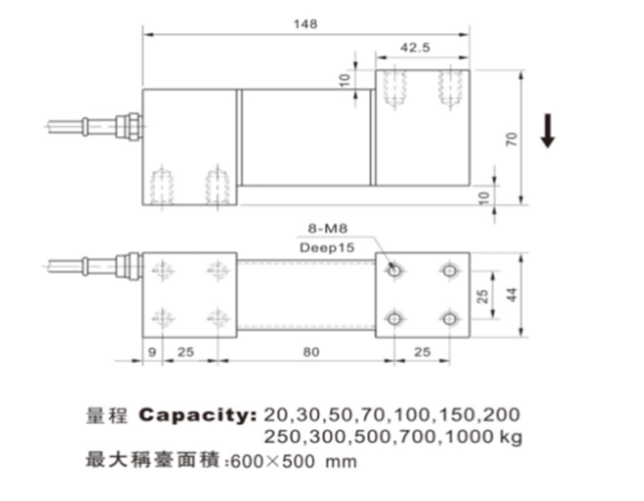 額定負(fù)載   20-1000kgdqb廣州南創(chuàng)電子科技有限公司