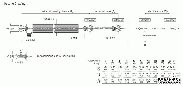 美國CELESCO MLPG位移傳感器外觀尺寸圖:YdI廣州南創(chuàng)電子科技有限公司