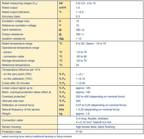 傳感器固有頻率 > 0.25 kHz(取決于標(biāo)稱力)