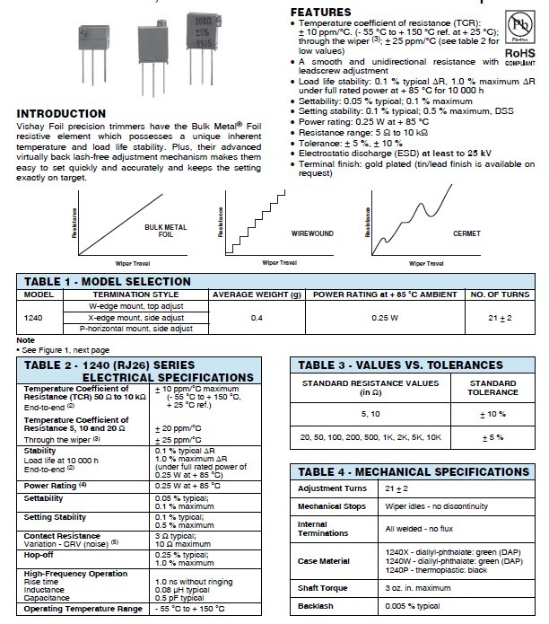 Vishay Foil precision trimmers have the Bulk Metal® Foil resistive element which possesses a unique inherent temperature and load life stability. Plus, their advanced virtually back lash-free adjustment mechanism makes them easy to set quickly and accurately and keeps the setting exactly on target.0lm廣州南創(chuàng)電子科技有限公司