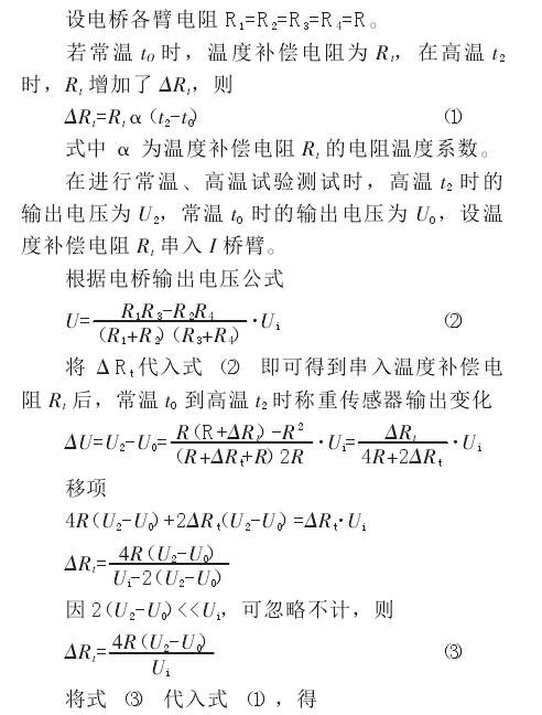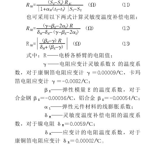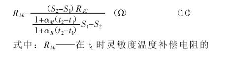 進行靈敏度溫度補償時,首先分別測量出溫度 t1和 t2時稱重傳感器的靈敏度 S1和 S2,然后應用下列公式計算補償電阻 RMt