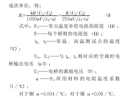 在實際應用中,利用上述計算公式得到的零點溫度補償電阻值,對于準確度等級不高的稱重傳感器基本能滿足補償要求。對于高準確度稱重傳感器并不一定十分合適,需要經(jīng)過反復升降溫測試調(diào)整,才能獲得理想的零點溫度補償結(jié)果。