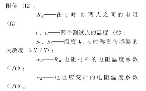 荷蘭 TNO 機械院推導出的稱重傳感器靈敏度溫度誤差表達式為: