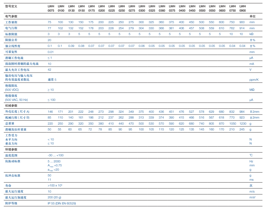 德國NOVOTECHNIK位移傳感器LWH-0360產(chǎn)品技術(shù)參數(shù):