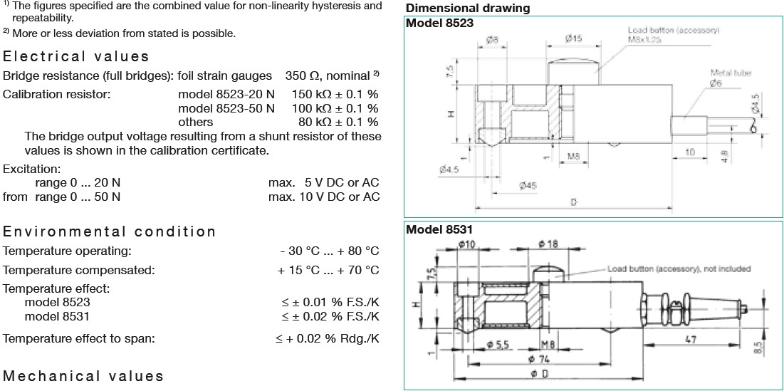 這些傳感器系列是特別適合于測(cè)定靜態(tài)和半靜態(tài)拉伸和壓縮測(cè)量。該膜稱重傳感器是基于設(shè)計(jì)已證實(shí)的原則。其緊湊的設(shè)計(jì)和非常扎實(shí)結(jié)構(gòu)使得它們適合用于制造使用植物以及在實(shí)驗(yàn)室和試驗(yàn)。傳感器特征值進(jìn)行了標(biāo)準(zhǔn)化的除外模型8523-100/50 N.這使得可以更換測(cè)量放大器不調(diào)整它。此外,它是能夠與相同的測(cè)量連接多個(gè)負(fù)載累計(jì)所述個(gè)體力范圍在同一時(shí)間。2jO廣州南創(chuàng)電子科技有限公司