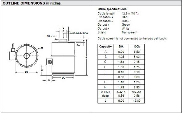 21607: 5223-B10-100K-40P1 100,000 lb 40ft RTI 3mV/V 700 OHM WW NTEP IIIL 10 M FM