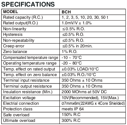 韓國(guó)奉信BCH稱(chēng)重傳感器量程如下:52C廣州南創(chuàng)電子科技有限公司