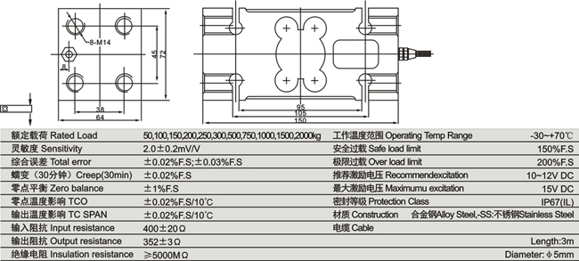 v 產(chǎn)品型號(hào):IL-100KG稱重傳感器/箱式IL