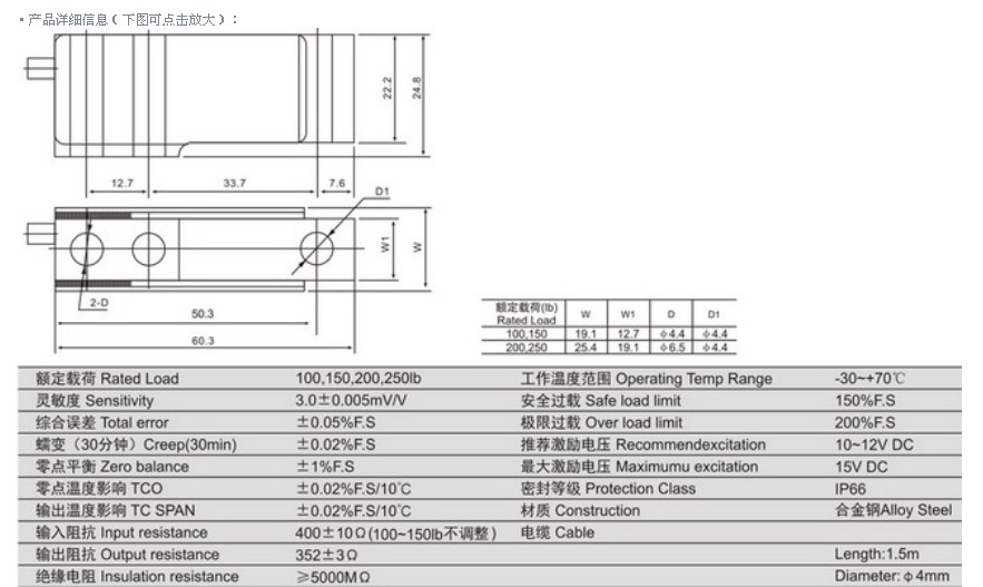 MBB-200LB稱重傳感器_寧波柯力