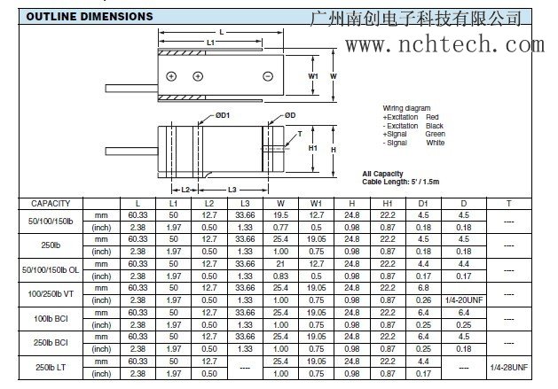 額定載荷Standard capacities (Emax) 50,100,150,250 lbs8yq廣州南創(chuàng)電子科技有限公司
