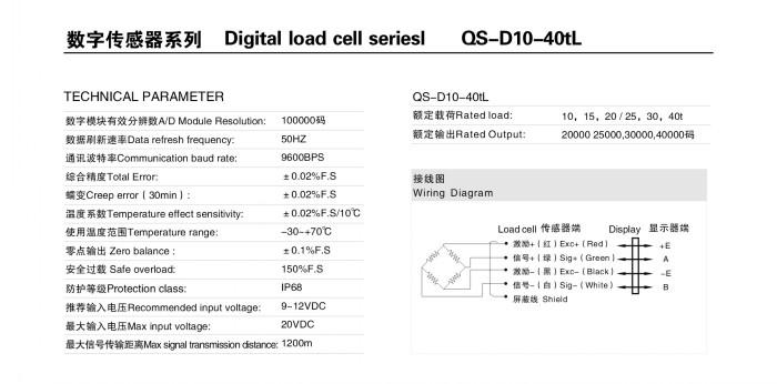QS-D-40t稱重傳感器技術(shù)圖:Technical drawings(注:QS-D10-40TL是數(shù)字傳感器也是QS-D-40t的另一種標(biāo)簽寫法)KZk廣州南創(chuàng)電子科技有限公司