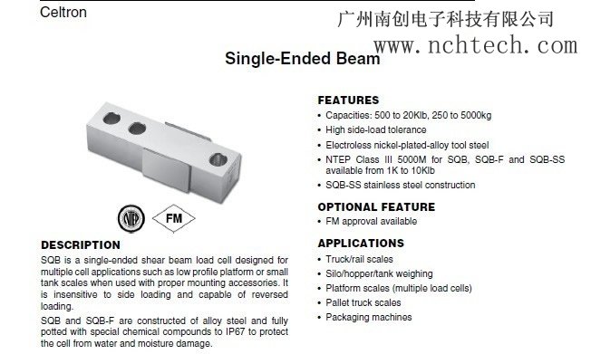 Celtron SQB單端梁稱重傳感器是高負(fù)荷量程0n7廣州南創(chuàng)電子科技有限公司