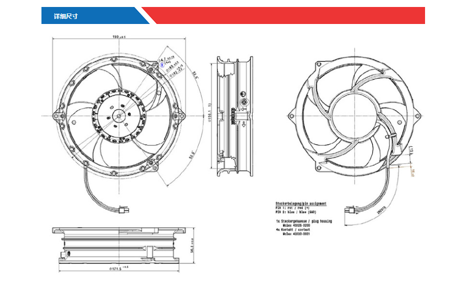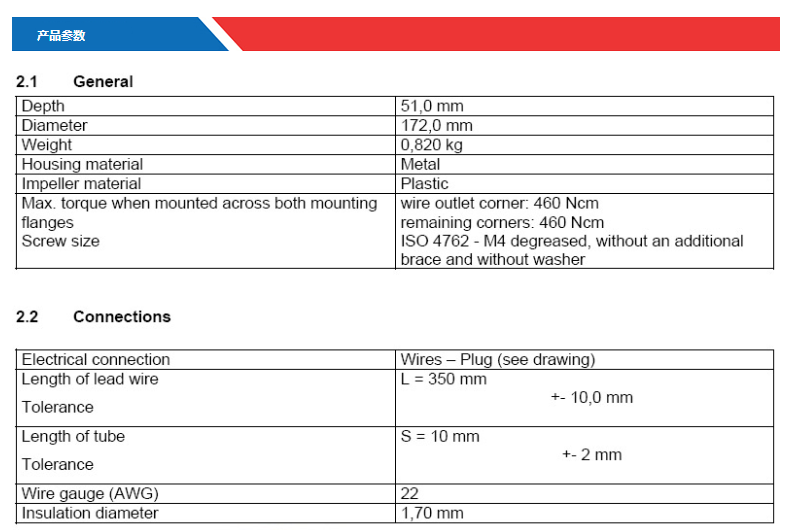 ebmpapst風(fēng)扇W2E143-AA09-01兩根電源線代表電容器那部分已經(jīng)接在機體內(nèi)部,僅需將兩根電源線分別與來自空開的火線及電容線連接。
