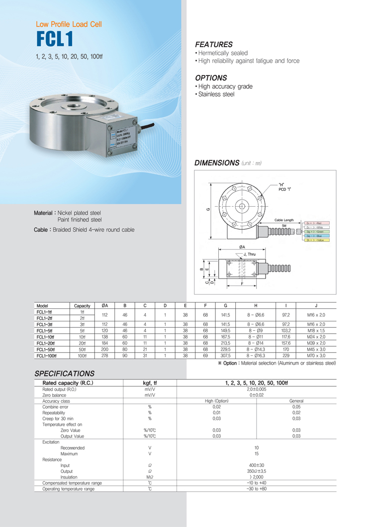 與韓國(guó)Fine稱(chēng)重傳感器 FCL1-20T型號(hào)相似型號(hào):