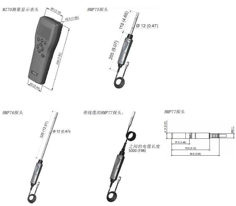 H M P 7 5是一種通用探頭,而H M P 7 6是一種長桿不銹鋼材質的探頭,特別適用于多灰塵環(huán)境下的現(xiàn)場檢查。HMP77使用小型探頭,帶有5 米探頭電纜,是不宜到達的測量區(qū)域以及維薩拉過程變送器現(xiàn)場校準的理想選擇。