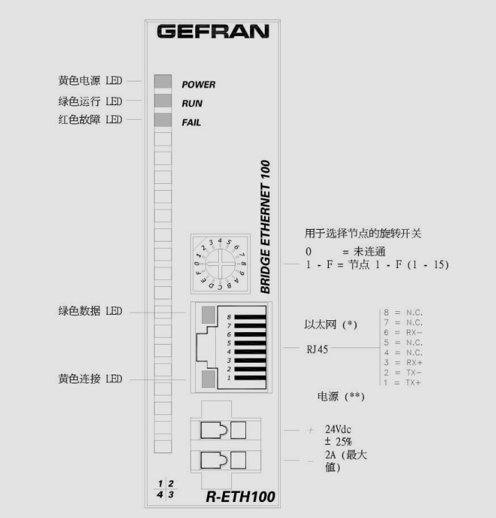 意大利杰佛倫gefranR-EU16 8路數(shù)字輸入/輸出模塊內(nèi)嵌微處理器,微處理器實現(xiàn)與火災(zāi)報警控制器通訊、電源總線掉電檢測、輸入輸出線路故障檢測、輸出控制、輸入信號邏輯狀態(tài)判斷、狀態(tài)指示燈控制。模塊接收到火災(zāi)報警控制器的啟動命令后,吸合繼電器,現(xiàn)場音箱從正常廣播切換到消防廣播,并點(diǎn)亮指示燈,同時將回答信號信息傳到火災(zāi)報警控制器,表明切換成功。(1)杰佛倫gefranR-TC8溫控模塊工作電壓:總線電壓:總線24V電源電壓:DC24V(2)杰佛倫gefranR-EU16 8路數(shù)字輸入/輸出模塊監(jiān)視電流:總線電流≤1mA電源電流≤6mA(3)R-TC8溫控模塊動作電流:總線電流≤4mA電源電流≤35mA(4)線制:與控制器采用無極性信號二總線連接,與DC24V電源采用無極性電源二總線連接(5)輸出容量:DC24V/1A(兩組輸出最大容量之和為DC24V/1A)(6)R-TC8溫控模塊杰佛倫輸出控制方式:脈沖、電平(繼電器常開/常閉無源觸點(diǎn)輸出,脈沖啟動時繼電器吸合時間為10s)(7)R-EU16 8路數(shù)字輸入/輸出模塊gefran杰佛倫出廠設(shè)置:兩路常開檢線方式(8)用環(huán)境ktN廣州南創(chuàng)電子科技有限公司