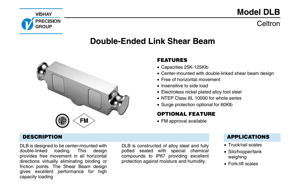 威世世銓傳感器Celtron DLB系列雙剪切梁稱(chēng)重傳感器iy8廣州南創(chuàng)電子科技有限公司