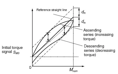 包括滯后在內的線性誤差也可以理解為公差帶寬度的一半,該寬度與參考直線對稱(見圖5)。與線性誤差測定程序的唯一不同之處在于,這里包括減小扭矩的測試過程。此差異對參考直線計算和參考直線誤差都會產生影響。y29廣州南創(chuàng)電子科技有限公司