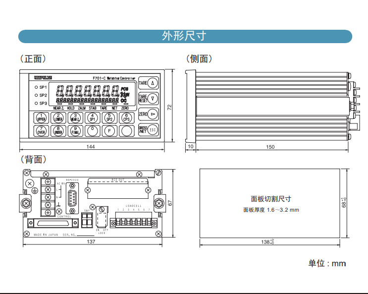 日本尤尼帕斯稱重顯示控制器F701顯示單位:t,kg,g,N,lb,無單位,可選xTX廣州南創(chuàng)電子科技有限公司