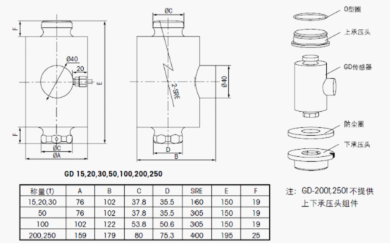 GD-250T GD搖柱式稱重傳感器,容量250T,20M電纜Kg0廣州南創(chuàng)電子科技有限公司