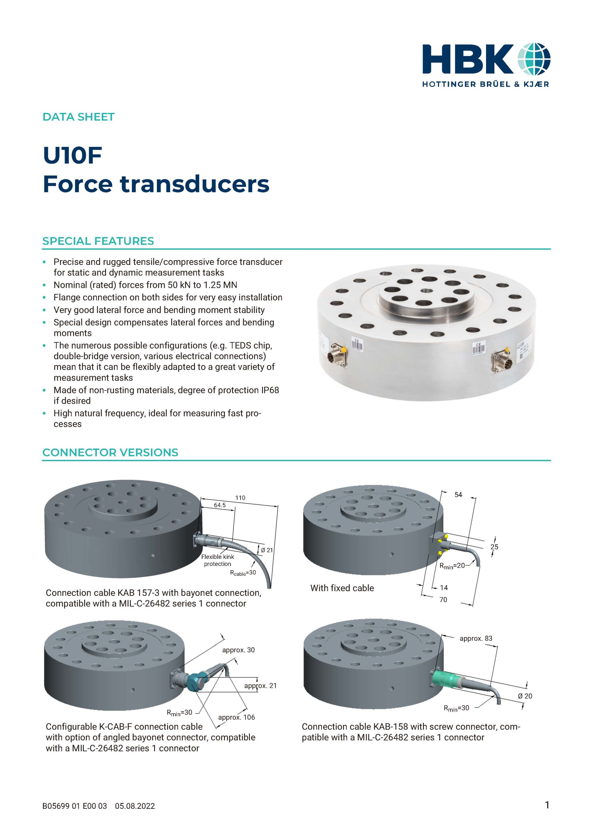 德國HBM力傳感器U10F/500KN產品技術參數:eqp廣州南創(chuàng)電子科技有限公司