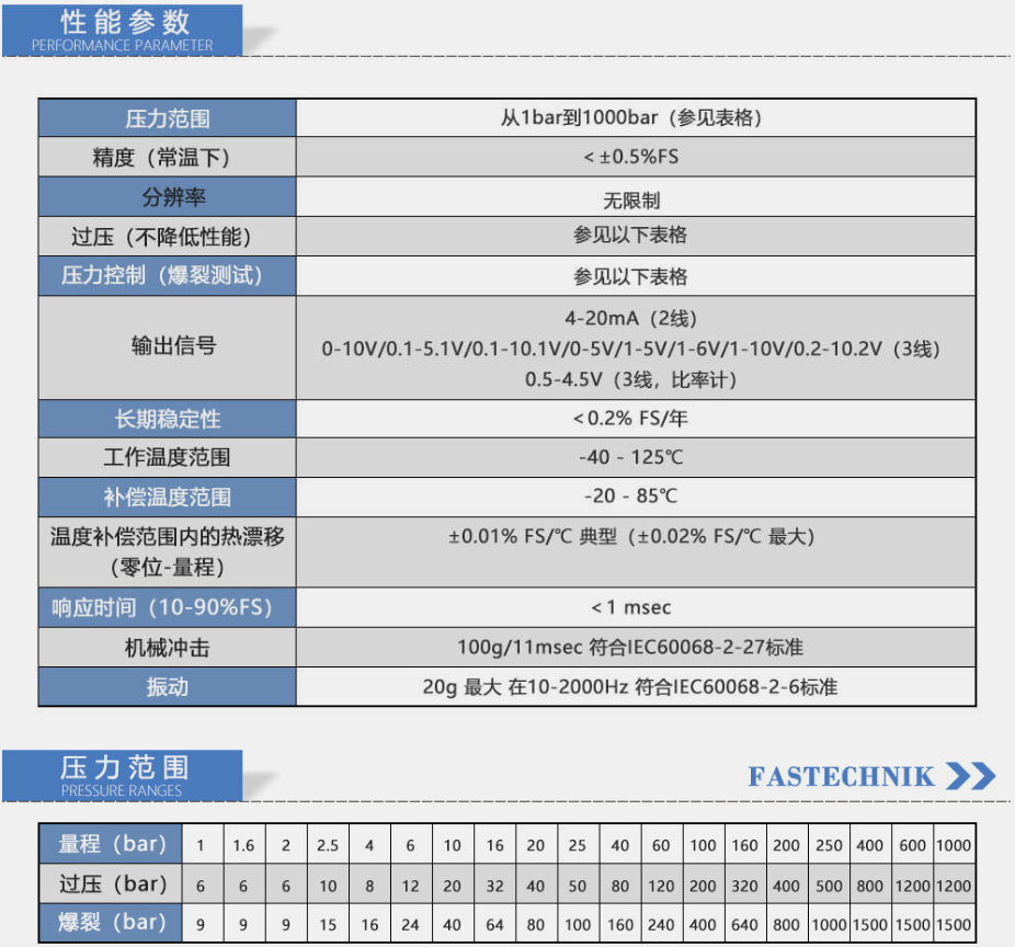 意大利杰佛倫gefran薄膜應(yīng)變片壓力傳感器KS-E-E-Z-B02C-M-V-530在測(cè)試時(shí),將應(yīng)變片用粘合劑牢固地粘貼在被測(cè)試件的表面上,隨著試件受力變形,應(yīng)變片的敏感柵也獲得同樣的變形,從而使其電阻隨之發(fā)生變化,而此電阻變化是與試件應(yīng)變成比例的,杰佛倫gefran壓力傳感器KS-E-E-Z-B04C-M-V因此如果通過(guò)一定測(cè)量線路將這種電阻變化轉(zhuǎn)換為電壓或電流變化,然后再用顯示記錄儀表將其顯示記錄下來(lái),杰佛倫gefranKS-E-E-Z-B02C-M-V-530變送器就能知道被測(cè)試件應(yīng)變量的大小。應(yīng)變片式壓力傳感器是應(yīng)變式傳感器的一種,其通過(guò)粘結(jié)在彈性元件上的應(yīng)變片的阻值變化來(lái)測(cè)量壓力值的。KS-E-E-Z-B04C-M-V壓力傳感器杰佛倫當(dāng)被測(cè)壓力傳遞到粘貼有電阻應(yīng)變片的膜片、彈性梁或應(yīng)變管后,使之產(chǎn)生變形,則由電阻應(yīng)變片組成的電橋有不平衡電壓輸出,該電壓與作用在KS-E-E-Z-B04C-M-V壓力傳感器杰佛倫GEFRAN上的被測(cè)壓力成正比。具有精度高、體積小、重量輕、測(cè)量范圍寬、固有頻率高、動(dòng)態(tài)響應(yīng)快等優(yōu)點(diǎn),同時(shí)耐振動(dòng)、抗沖擊性能良好。KS-E-E-Z-B02C-M-V-530壓力傳感器變送器GEFRAN杰佛倫但輸出信號(hào)較小,受溫度影響較大。uma廣州南創(chuàng)電子科技有限公司
