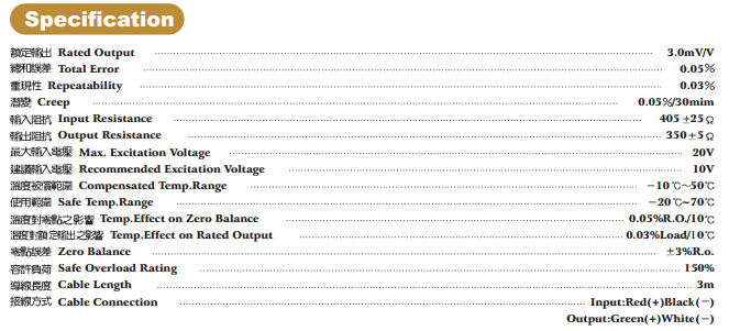 臺(tái)灣JIHSENSE LC稱重傳感器性能規(guī)格參考圖: