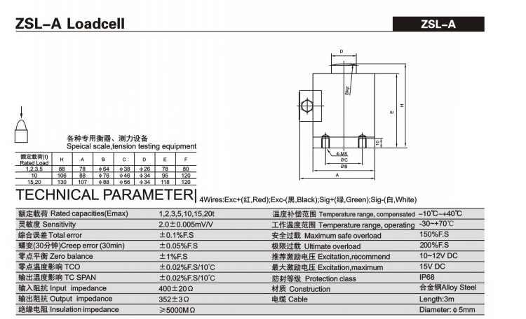 寧波柯力稱重傳感器ZSL-A-5t產(chǎn)品技術(shù)參數(shù)及尺寸圖:LvD廣州南創(chuàng)電子科技有限公司