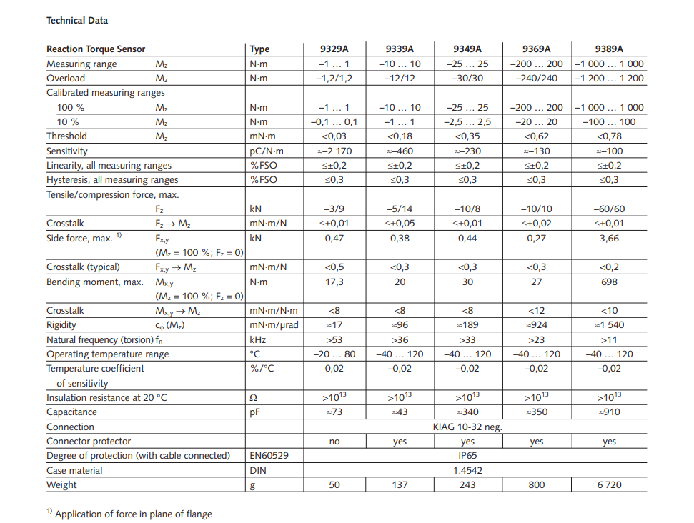 瑞士奇石樂扭矩傳感器以 9349A為例技術(shù)參數(shù)圖:uN3廣州南創(chuàng)電子科技有限公司
