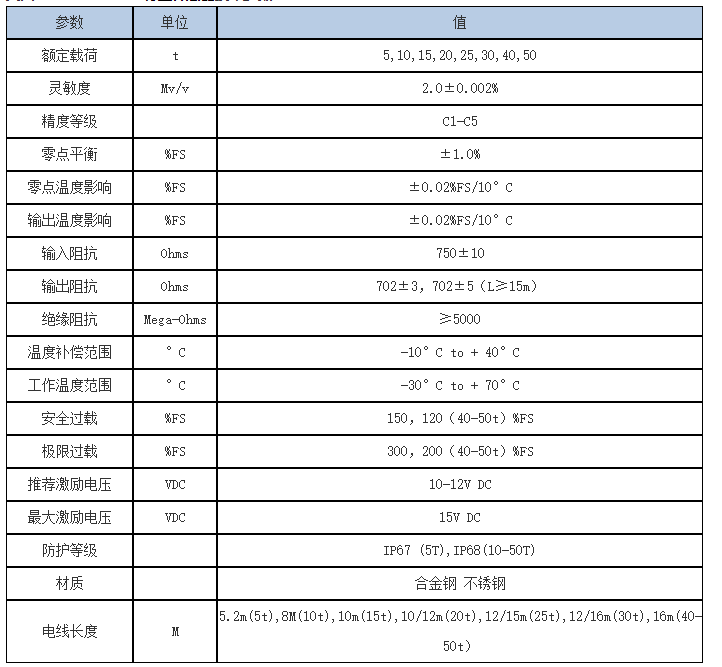 柯力稱重傳感器技術(shù)參數(shù)圖:OOj廣州南創(chuàng)電子科技有限公司