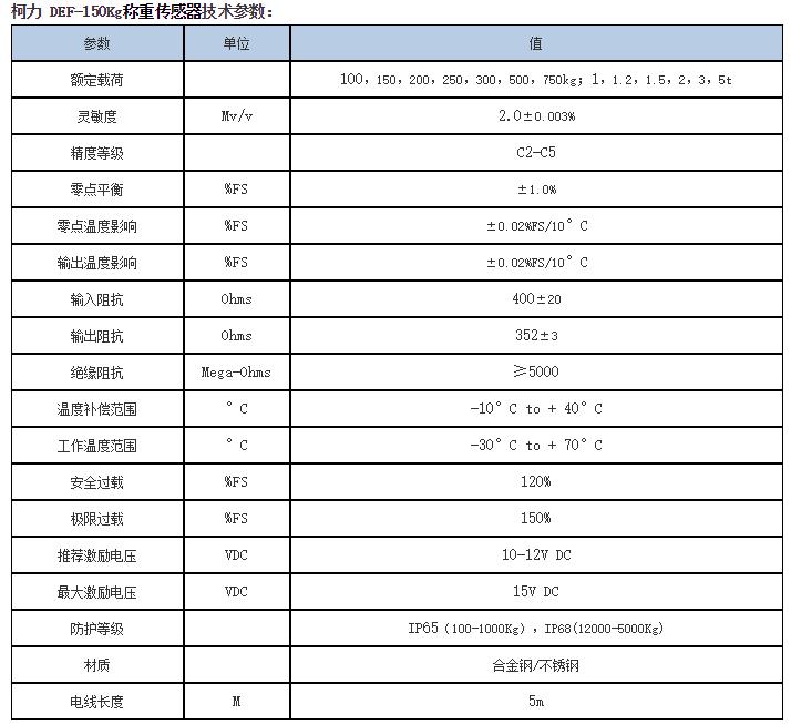 量程可選:DEF-50kg/100kg/150kg/200kg/250kg/300kg/500kg/750kg/1t /1.2t /1.5t /2t /3t /5t /7.5tHyv廣州南創(chuàng)電子科技有限公司
