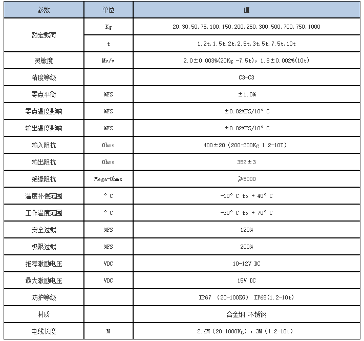 量程可選:20Kg 30kg 50kg 75kg 100kg 150kg 200kg 250kg 300kg 500kg 700kg 1t 1.2t 1.5t 2t 2.5t 3t 5t 7.5t 10t 750kg lsm廣州南創(chuàng)電子科技有限公司