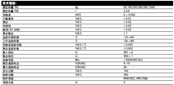 梅特勒托利多TSC系列稱重傳感器所有量程如下:5Wz廣州南創(chuàng)電子科技有限公司