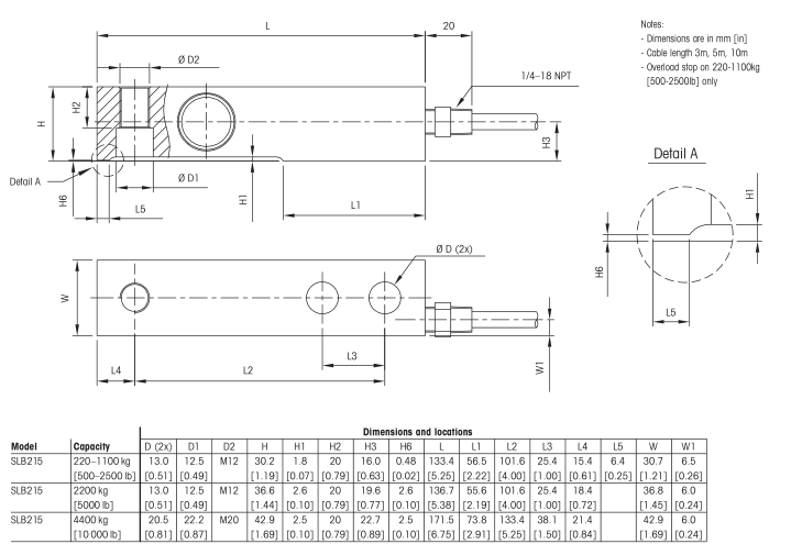 METTLER TOLEDO稱(chēng)重傳感器SLB215-220kg技術(shù)參數(shù)圖: