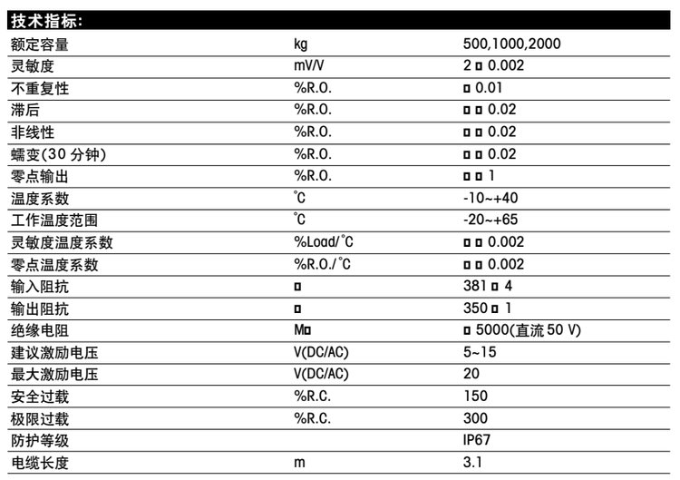 METTLER TOLEDO稱重傳感器SBC-2000kg技術參數(shù):cRh廣州南創(chuàng)電子科技有限公司