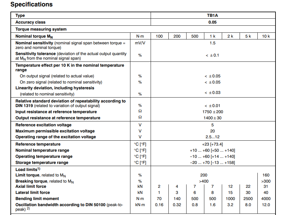 靜態(tài)量程:HBM TB1A扭矩傳感器的量程有100,200,500,1k,2k,5k,10k N.m