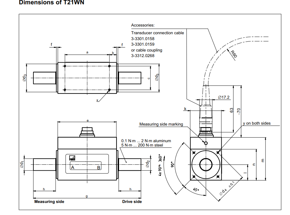 德國HBM T21WN扭矩傳感器技術(shù)參數(shù)圖: