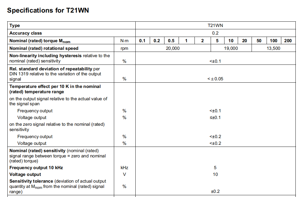 德國HBM T21WN扭矩傳感器技術(shù)參數(shù):