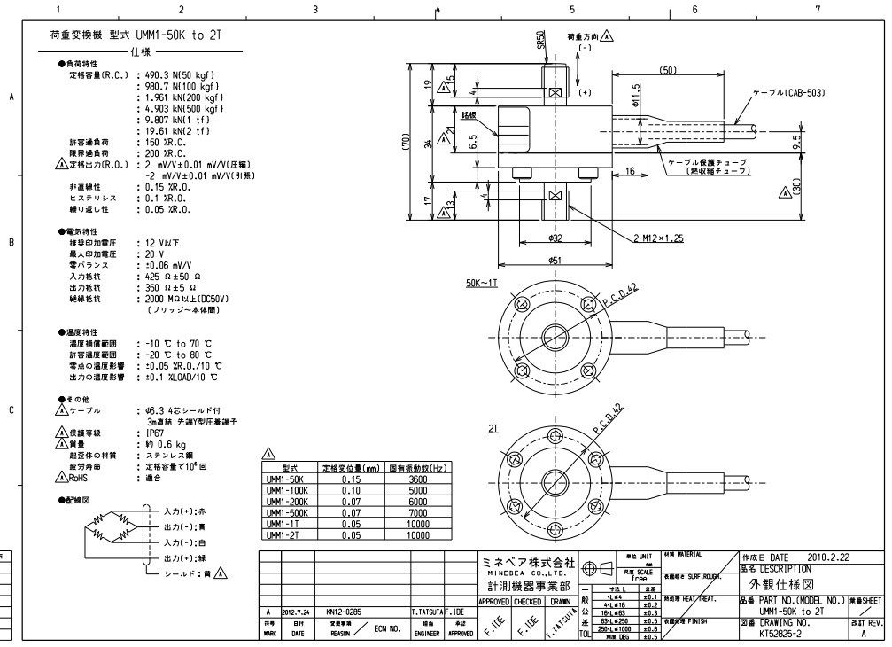 UMM1-2T-20M傳感器 日本NMB UMM1-2T-20M稱重傳感器所有量程型號: