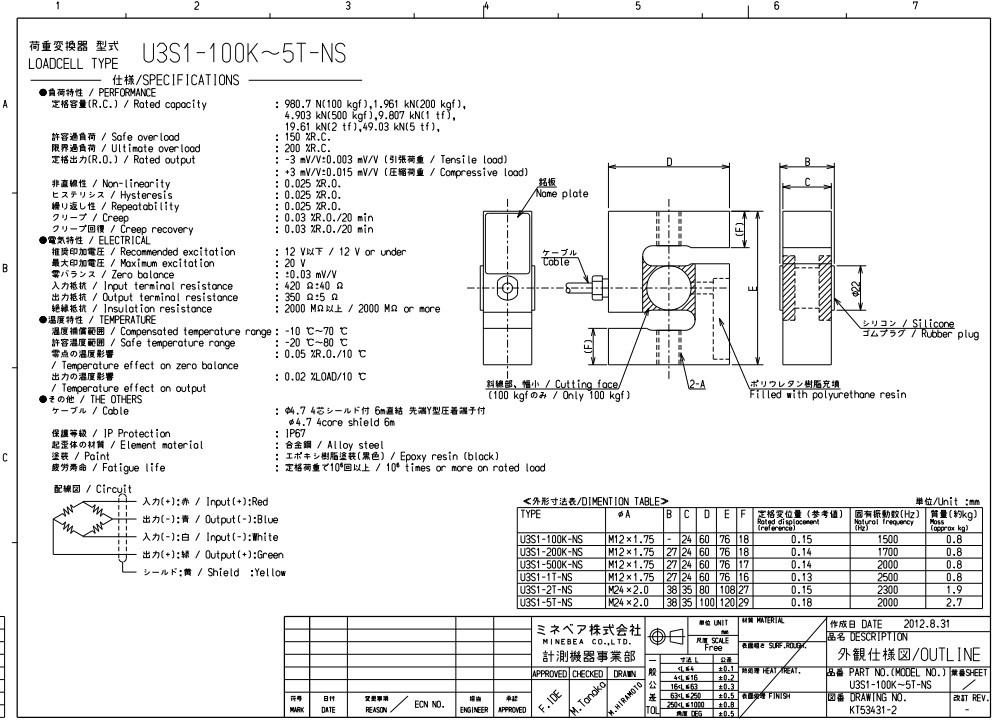 U3S1-100K-NS 980.7N﹛100kgf﹜ M12×1.75 - 24 60 76 18 0.15 1500 0.8