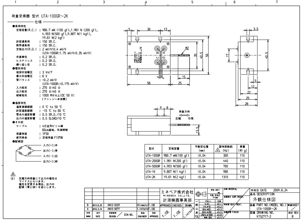 | 定格出力 | ±2 mV/V±0.4 mV/V (UT-100GR:±1.75 mV/V±0.35 mV/V以上) |