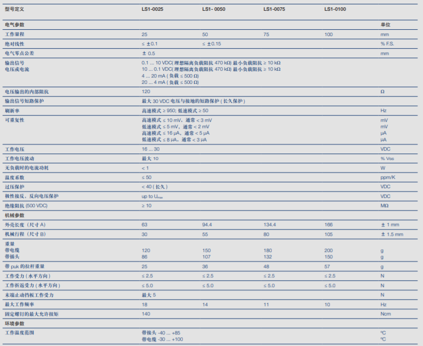 德國Novotechnik LS1系列直線位移傳感器產(chǎn)品特點:6Lj廣州南創(chuàng)電子科技有限公司