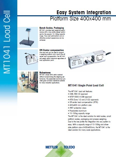 瑞士METTLER TOLEDO MT1041-30稱重傳感器產(chǎn)品資料圖:tNA廣州南創(chuàng)電子科技有限公司