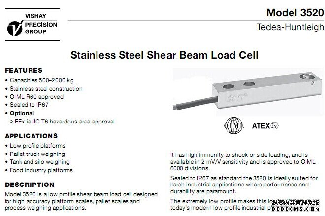 美國Tedea 3520稱重傳感器現(xiàn)貨、價(jià)格、產(chǎn)品資料、圖片、貨期、發(fā)貨方式、技術(shù)參數(shù)FMU廣州南創(chuàng)電子科技有限公司