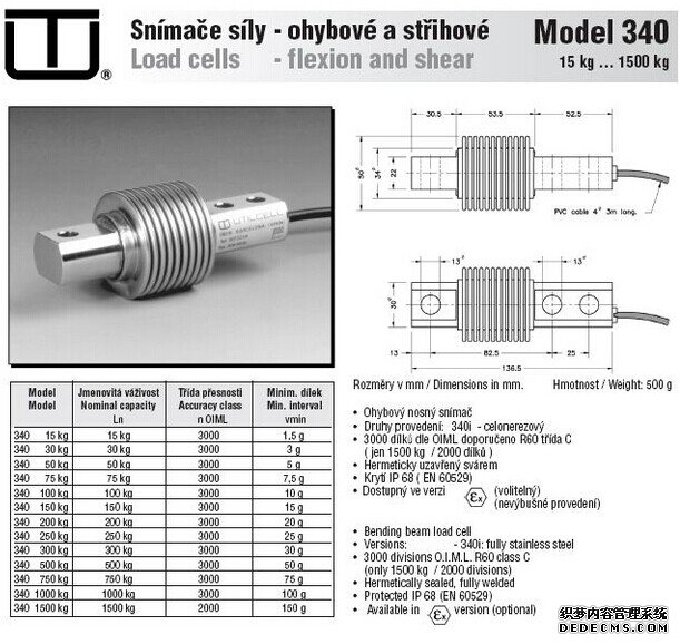 西班牙尤梯爾稱重傳感器MOD340-15kg技術(shù)參數(shù):u0q廣州南創(chuàng)電子科技有限公司