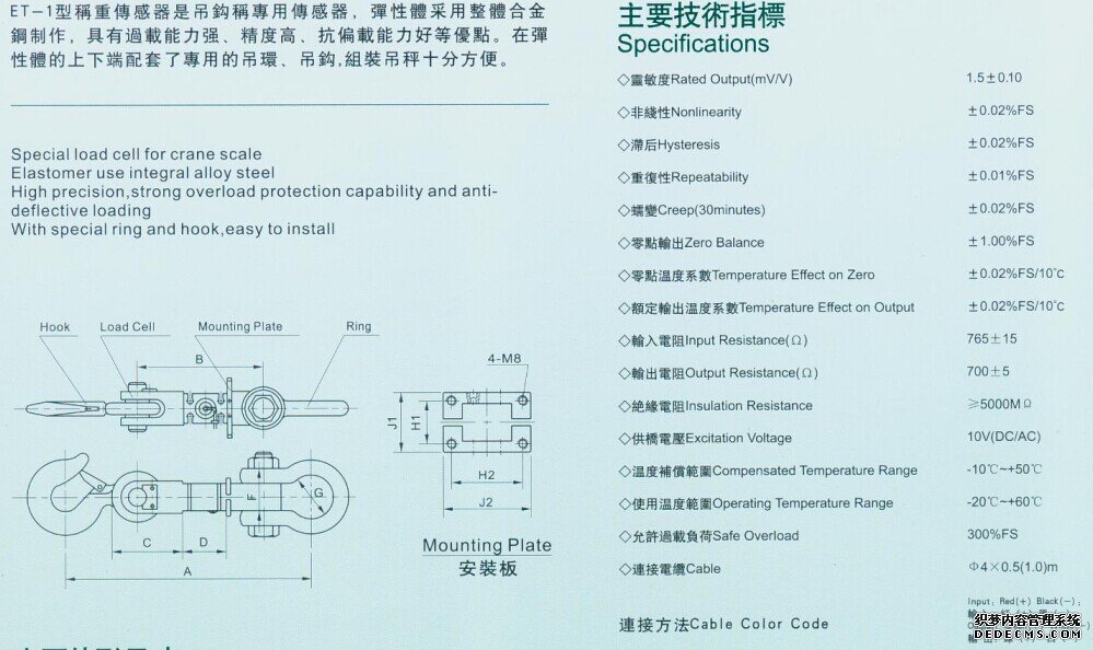 美國AC稱重傳感器 ET-1-20T連接方式:tOj廣州南創(chuàng)電子科技有限公司