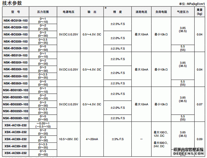 日本鷺宮NSK-BD030D-103壓力傳感器產(chǎn)品技術(shù)參數(shù)圖:QXG廣州南創(chuàng)電子科技有限公司