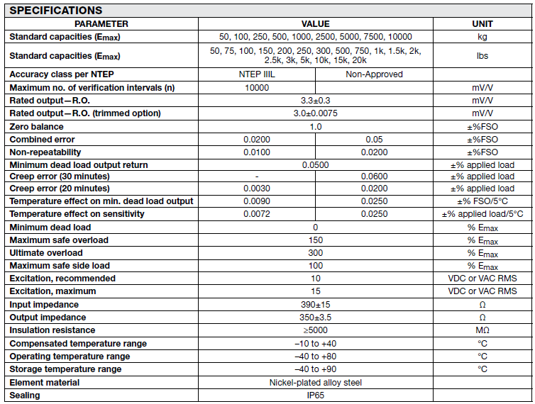 XZG廣州南創(chuàng)電子科技有限公司XZG廣州南創(chuàng)電子科技有限公司美國vishay Revere稱重傳感器9363-500kg產(chǎn)品技術(shù)參數(shù):XZG廣州南創(chuàng)電子科技有限公司